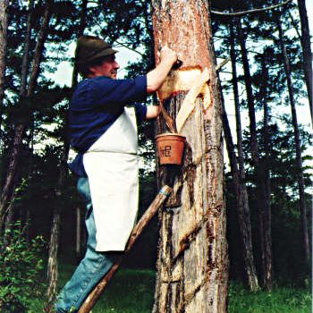 Vor allem aus Waldkiefern, seltener aus Weiß- und Rottanne wird der Terpentin genannte Balsam gewonnen, aus dem Terpentinöl destilliert wird